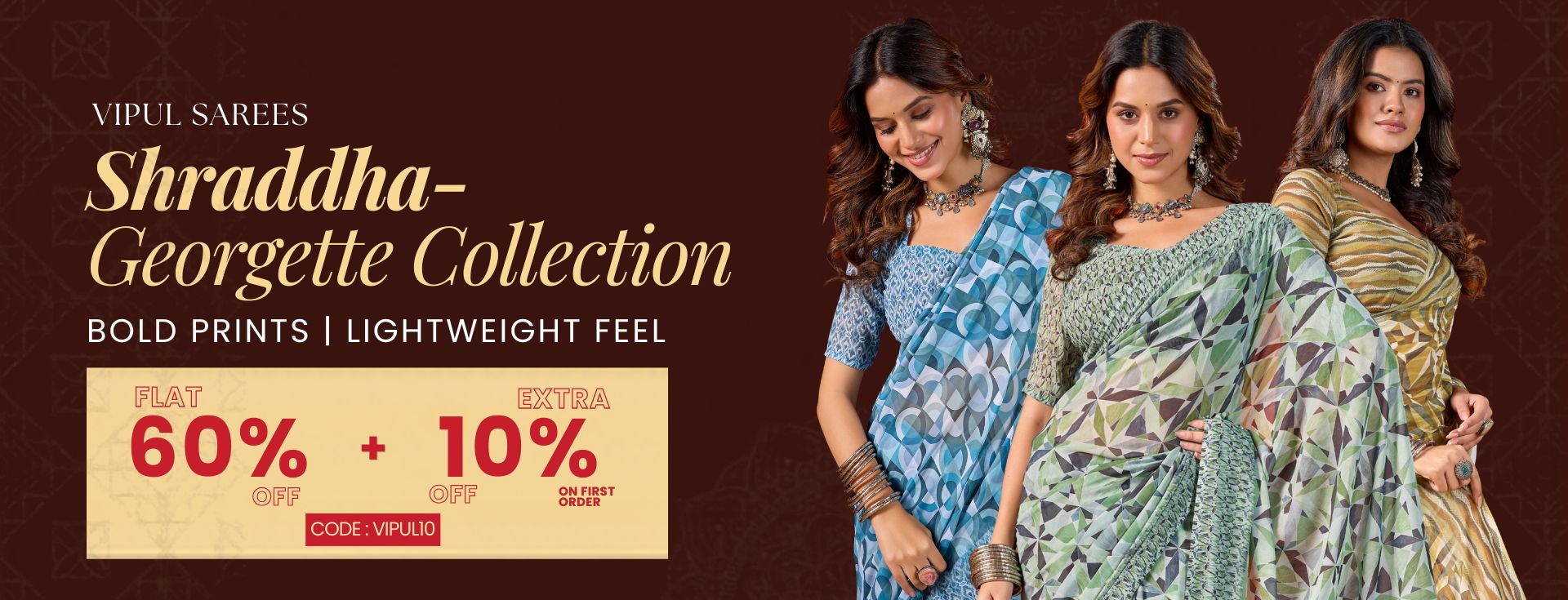 "Vipul Sarees are my go-to for festive occasions. The quality is unmatched and every design feels so unique!"