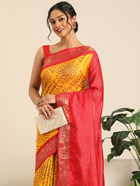 Vanya–Yellow Red Printed Weaving Silk Saree