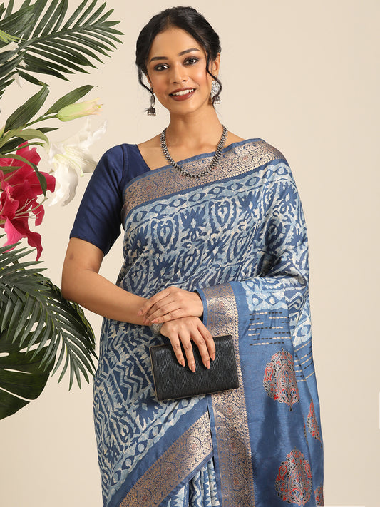Vanya–Blue Printed Weaving Silk Saree