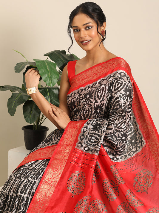 Vanya–Black Printed Weaving Silk Saree