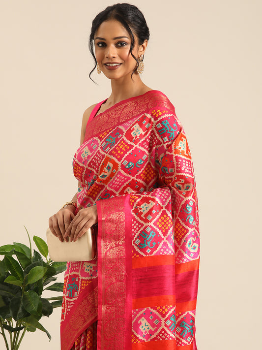 Vanya–Pink Printed Weaving Silk Saree