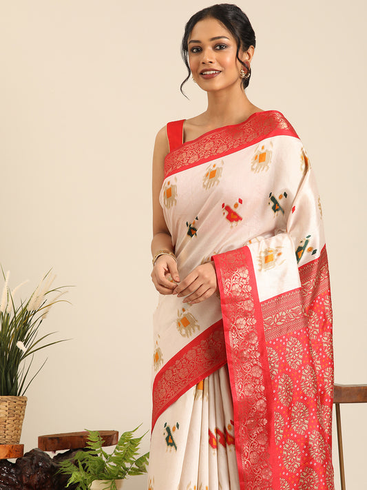 Vanya–Off White Printed Weaving Silk Saree