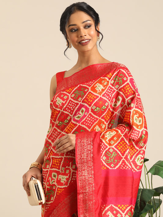 Vanya–Red Printed Weaving Silk Saree