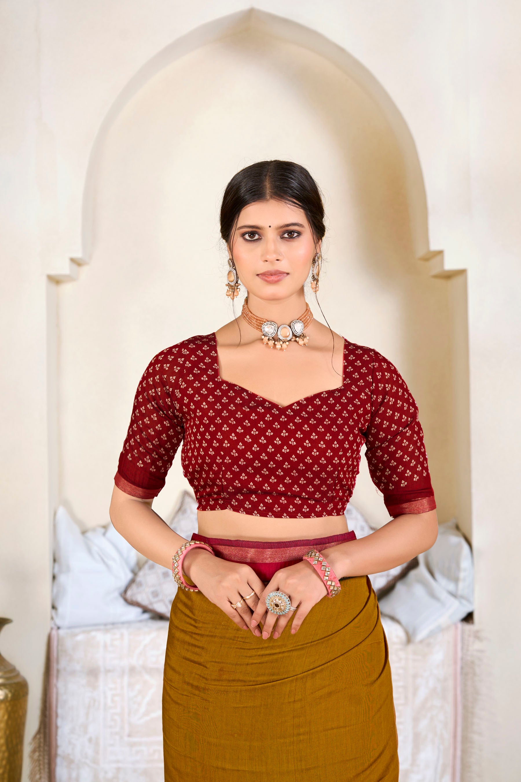 This yellow saree from the Monalisa collection is made from fine Liva Cotton Silk highlighting a charming printed pattern. Includes a blouse piece crafted in the same soft fabric. Designed for ease and versatility, it fits beautifully into any celebration.