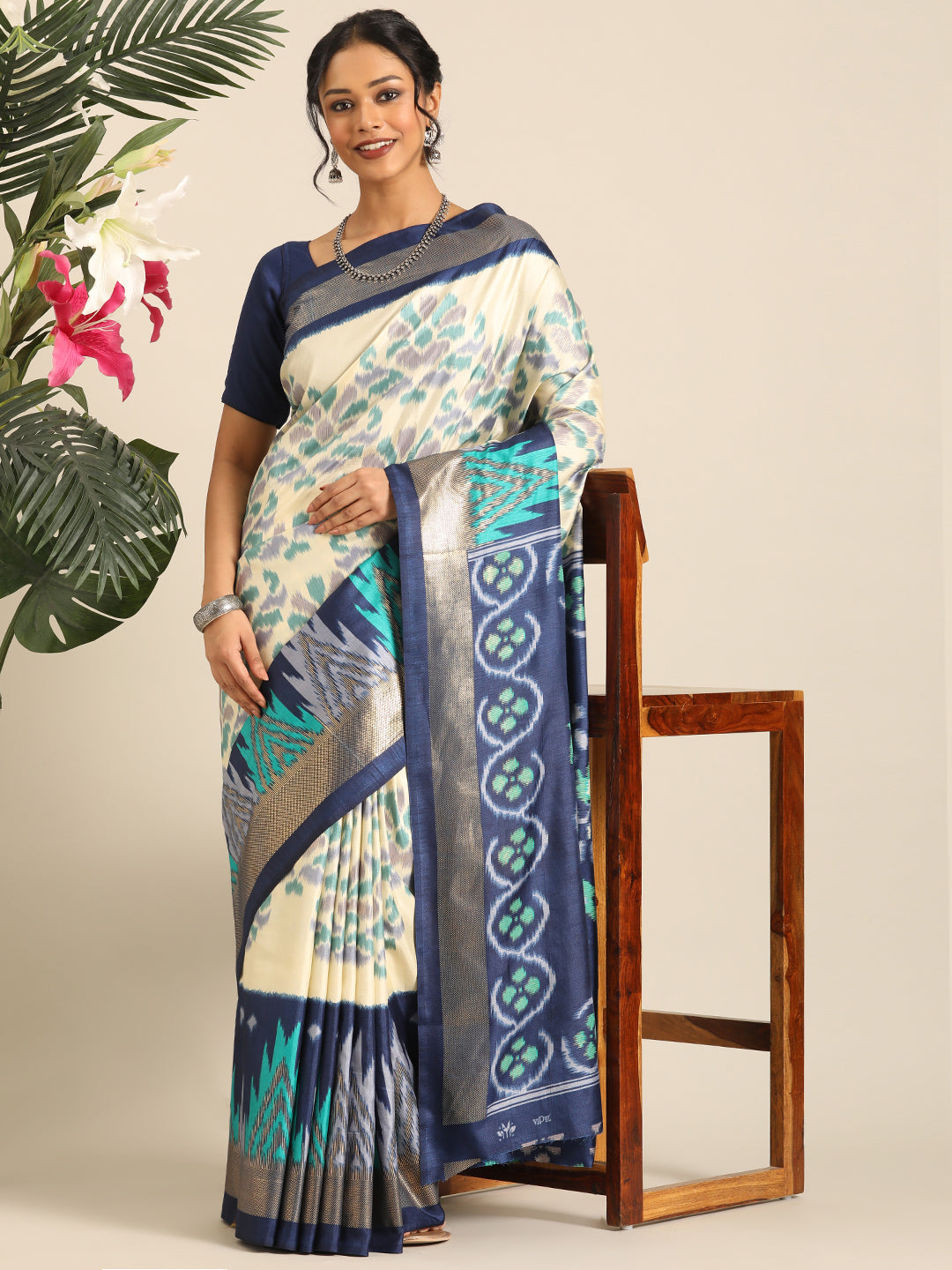 This elegant white saree from Tanta is made from soft silk fabric with a delicate printed pattern. It includes a matching blouse piece crafted from the same fabric. Lightweight and comfortable, it is ideal for festivals and special events. The pure white color adds a timeless and graceful touch.